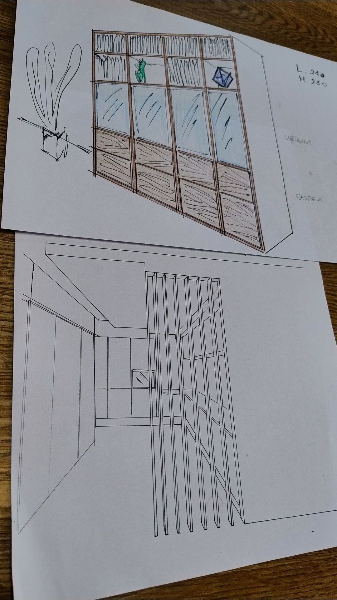 - pareti divisorie creative in vari materiali e colori anche bifacciali (anche con illuminazione) con porte a bilico a doppia apertura;